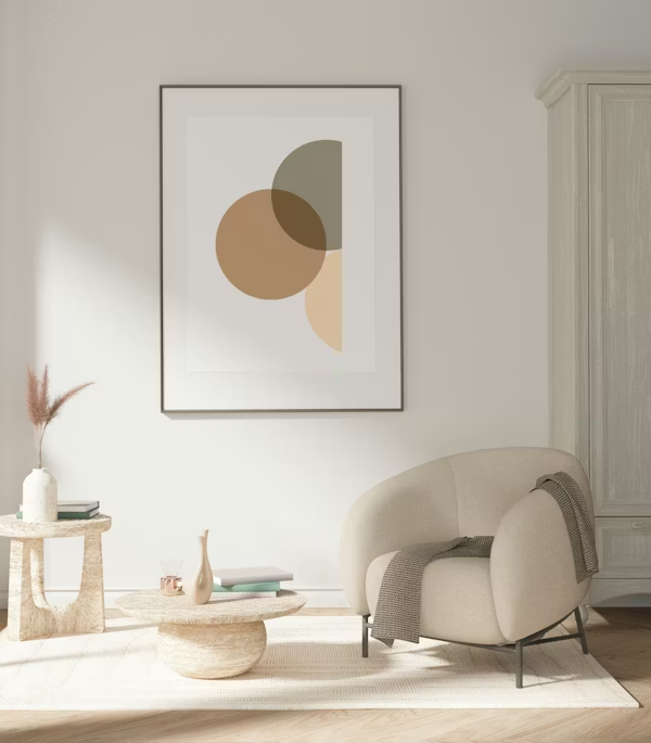Once walls are settled, bring in art that adds character without breaking your palette. Black-and-white photography, abstract line art, landscape prints, and textured canvases are all strong options. Neutral living room ideas are at their best when they feel personal, not generic. Art is where that personality can show up.