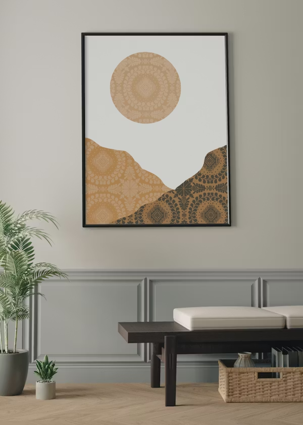 Scale matters here too. One larger piece can look cleaner and more intentional than lots of tiny frames scattered around. If you love gallery walls, keep frame colors cohesive and spacing consistent. That structure helps the room feel curated, not chaotic.